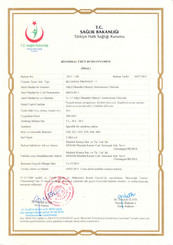 Havuz ve sauna gibi yüksek nemli ortamlarda hastalık yaratabilecek mikroorganizmalara karşı etkili dezenfeksiyon maddesidir. Ayak mantarlarının bulaşmasını engellemek için kullanılır. Kullanım oranında cilt ile hiçbir uyumsuz özellige sahip degildir.